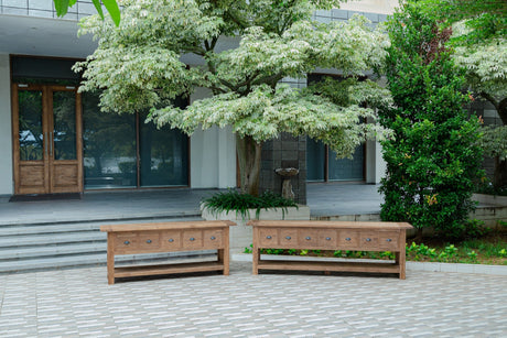€ 1.675Eenheid prijs /Niet beschikbaarRustiek teak dressoir met lades – Gerecycled massief hout 200 / 250 cm