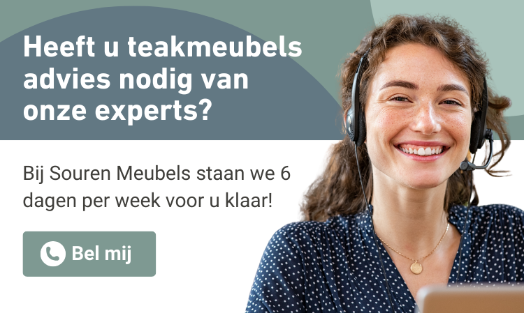 De rustieke afwerking laat de natuurlijke structuur van het massieve teakhout zien, met karakteristieke nerven en authentieke details. De opvallende brede zijbalken en het massieve bovenblad geven de kast een robuuste en tijdloze uitstraling.