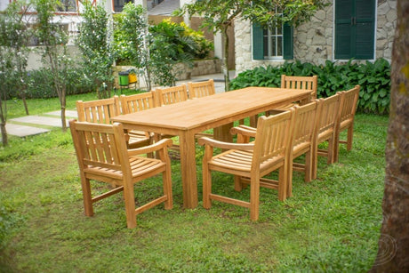 Teakhouten tuintafel 280 x 100 + 10 tuinstoelen Elephant