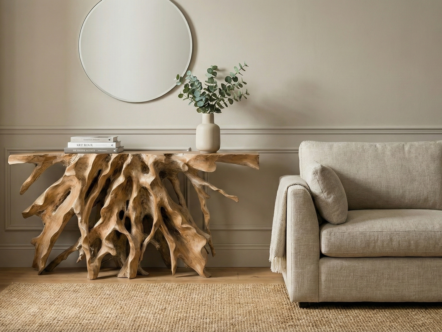 Teak wortelhouten sidetable – Uniek natuurkunstwerk